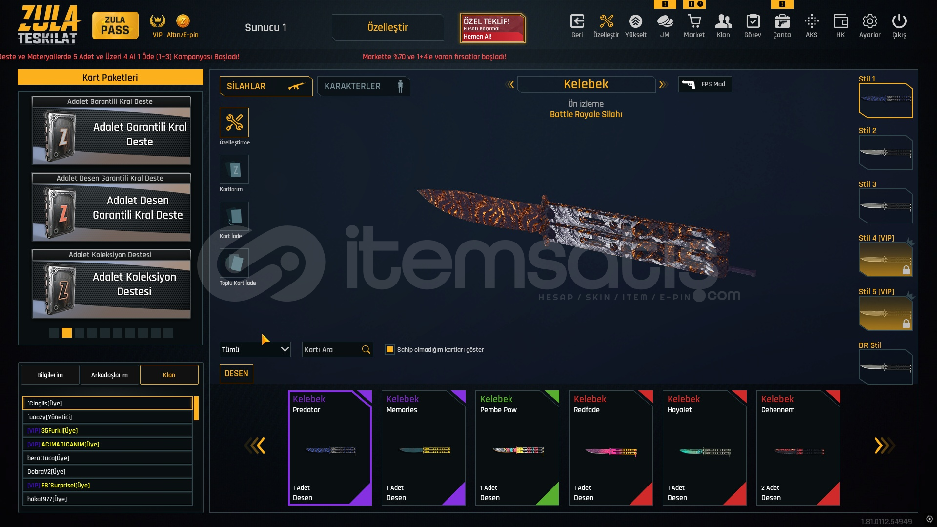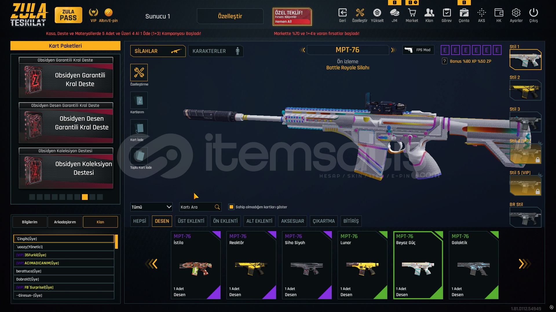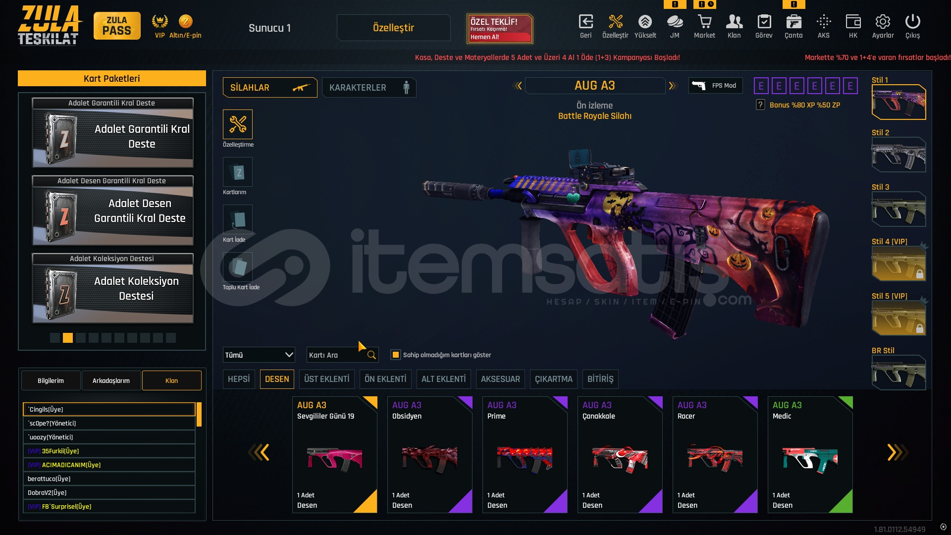 Hesap artı ve sınırsız olarak boştur hesapta Zsl 4 kar98 desen vardır 2 tane qua plus vardır.Sınırsız güçlendiriciler vardır resimlerden bakabilirsiniz leyla kurt %5 koşma elena %5 koşma kask %15 ve daha fazlasıÖzelleştirme olarak doludur artı olarak boştur level 97 tel mail sağlamdırustura +6aug +5mpt +4m93r +5