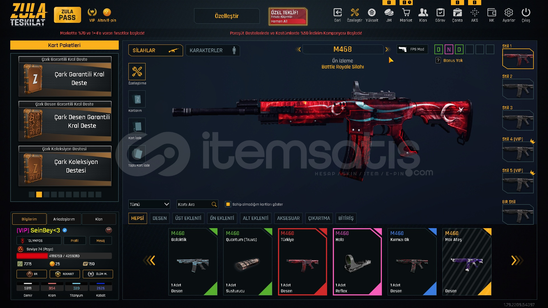 Hesabın İçerisinde MOR Ateş Awp + 6MPT 76 + 6İKİLİ BOMBA + 6Tel Patlak