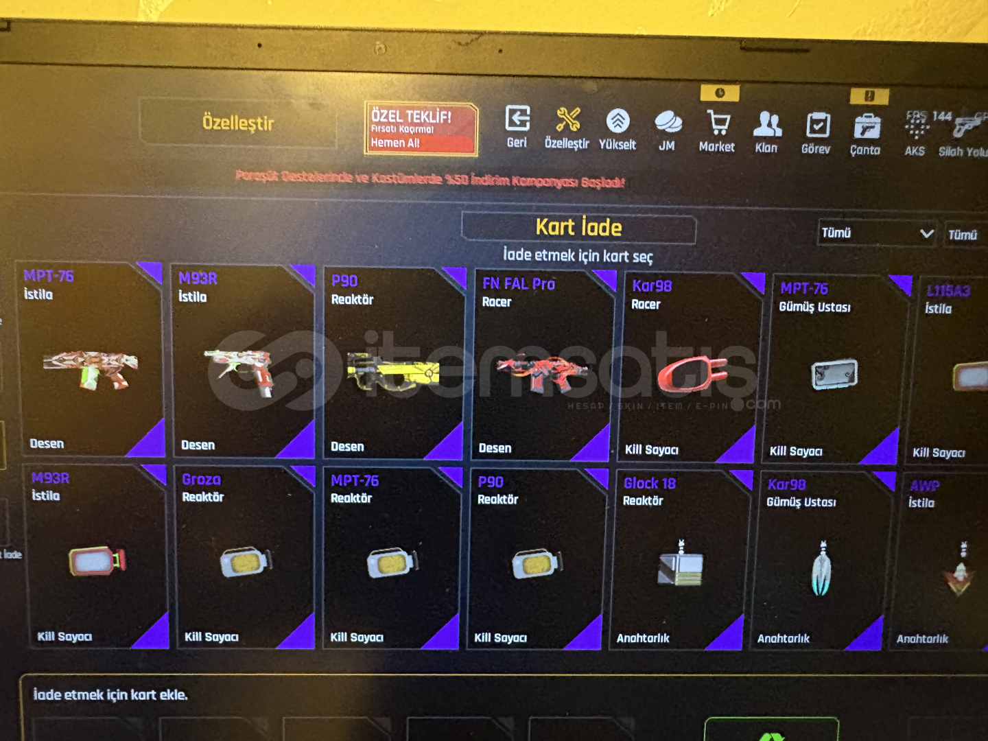 Usturalı +7MPT-76 +3BOL ÖZELLEŞTİRMELİ HESAPSKİNLİ 32 SeviyeTEMiZ BAĞ34 K ZA YATIRILAN HESAP