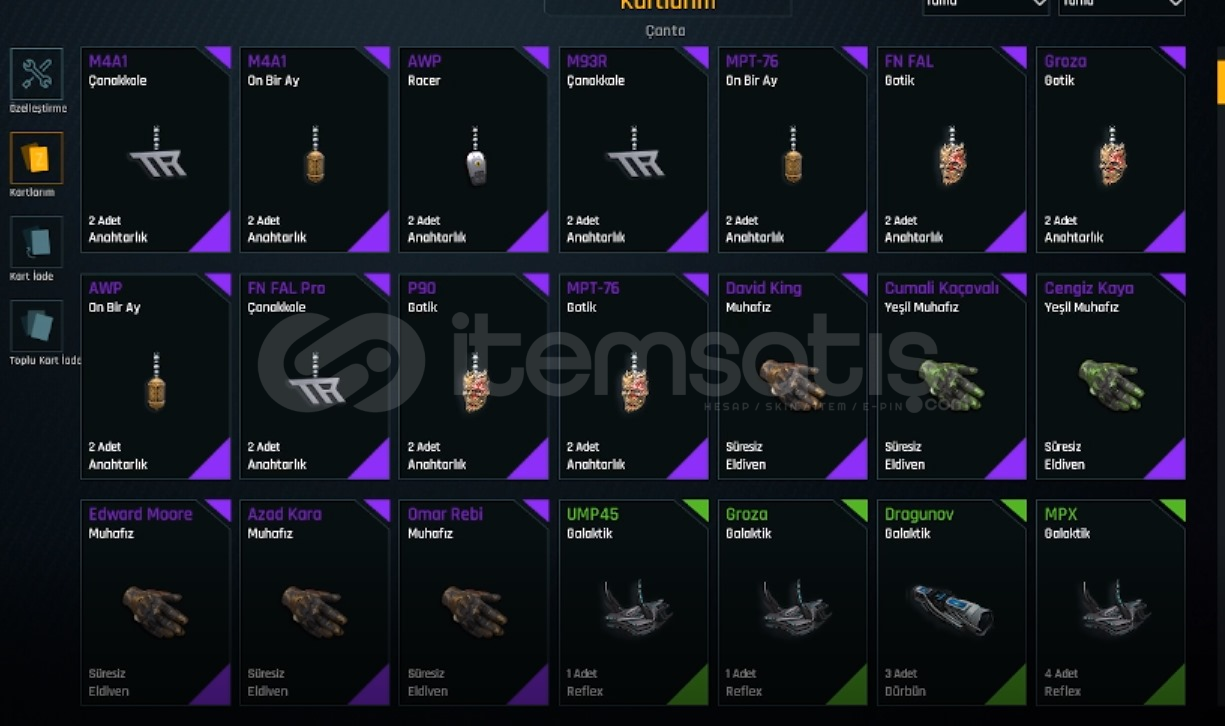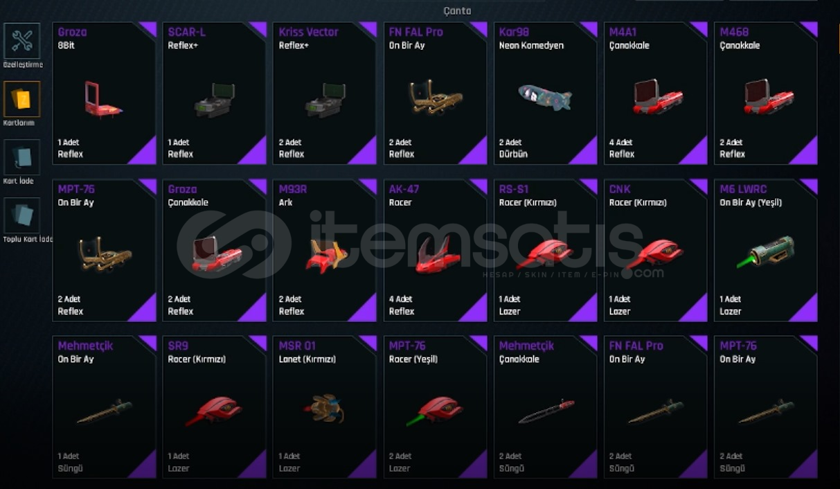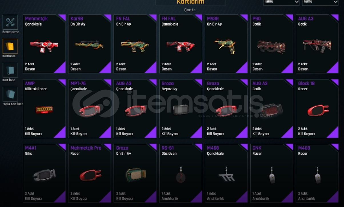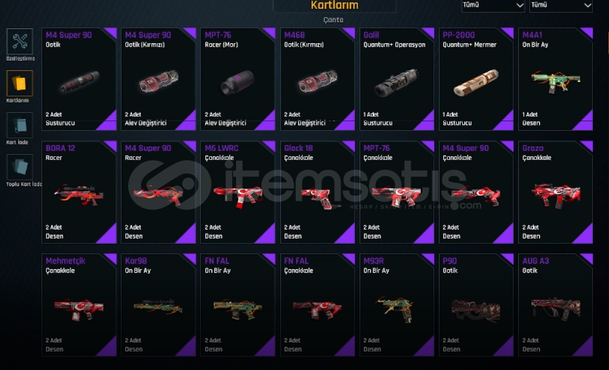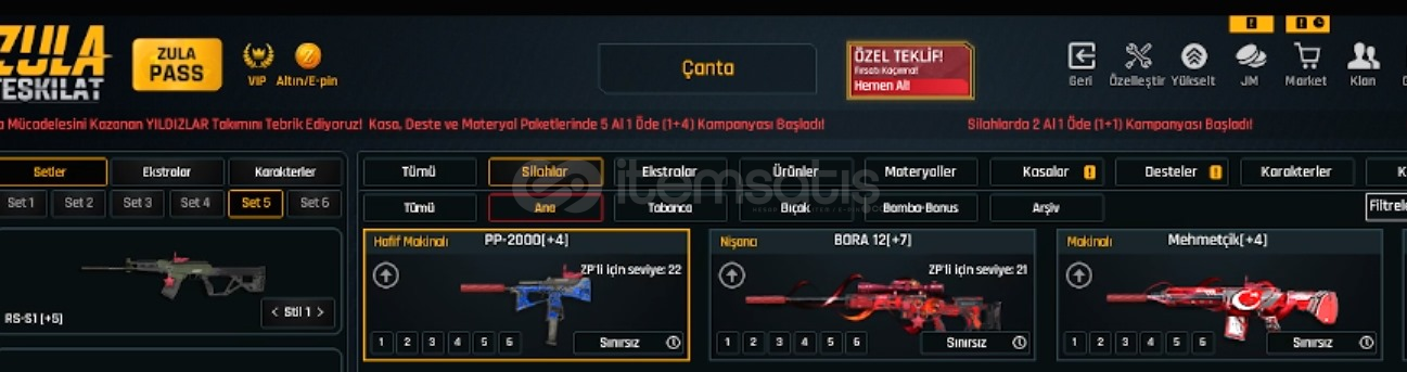 Sınırsız Bora 12Sınırsız MehmetçikSınırsız PP-2000Sınırsız Çeklik Yelek %10Aug +7Mpt +6Kar98 +6Awp +6Rs +5L11 +6Groza +6Bora +7M93R +6Glock18 +6Desert +5Karanbit +7Knuck +7Kelebek +7Ustura +7Katana +6Esinti +5İkili Bomba +6Mk2 +6890 adet sis bombasıZeynep Yılmaz 70+GLeyla Kurt +60 GLogo 4Korku SperyiDiğer silahlar + lıdır...