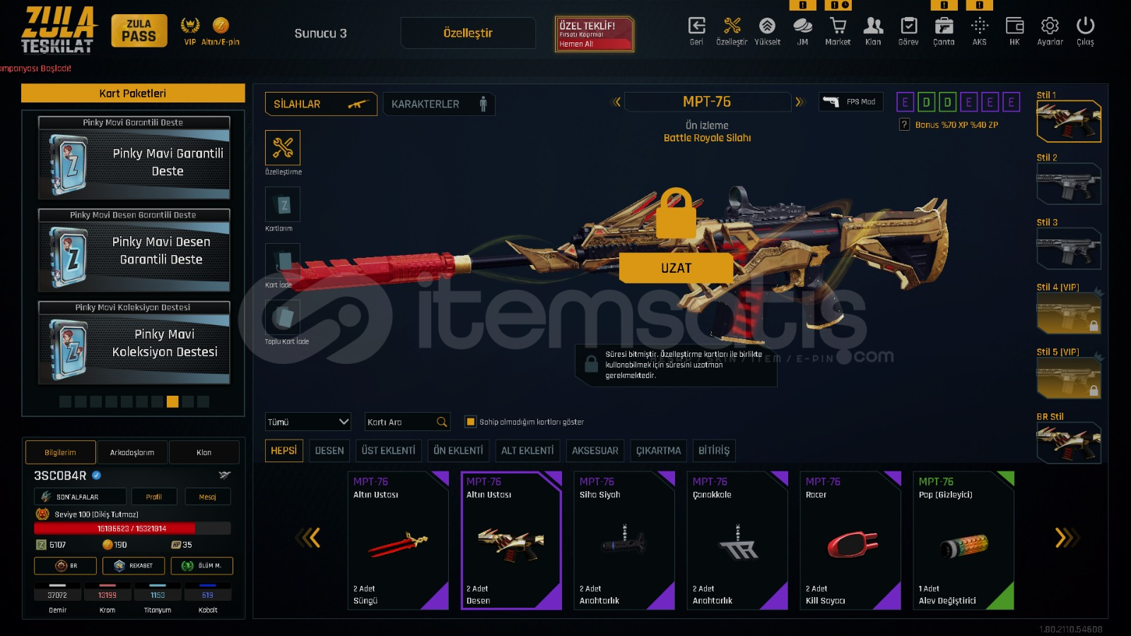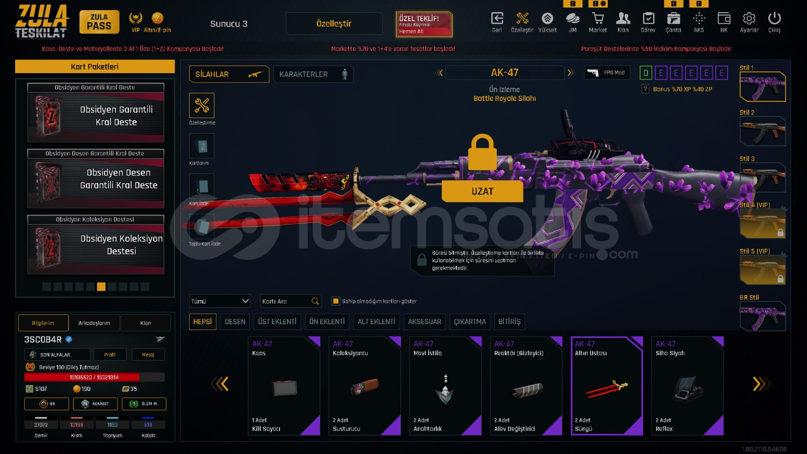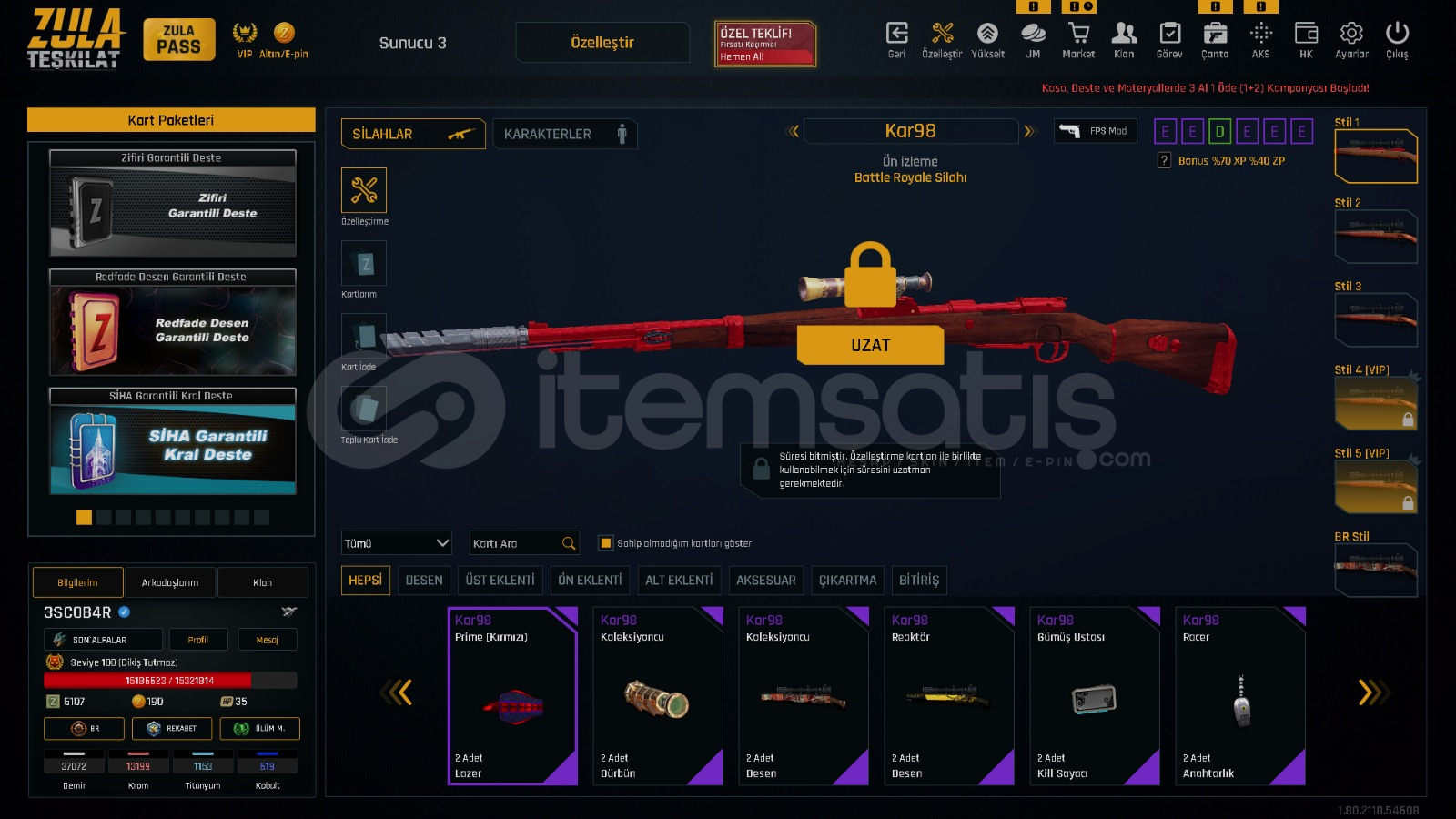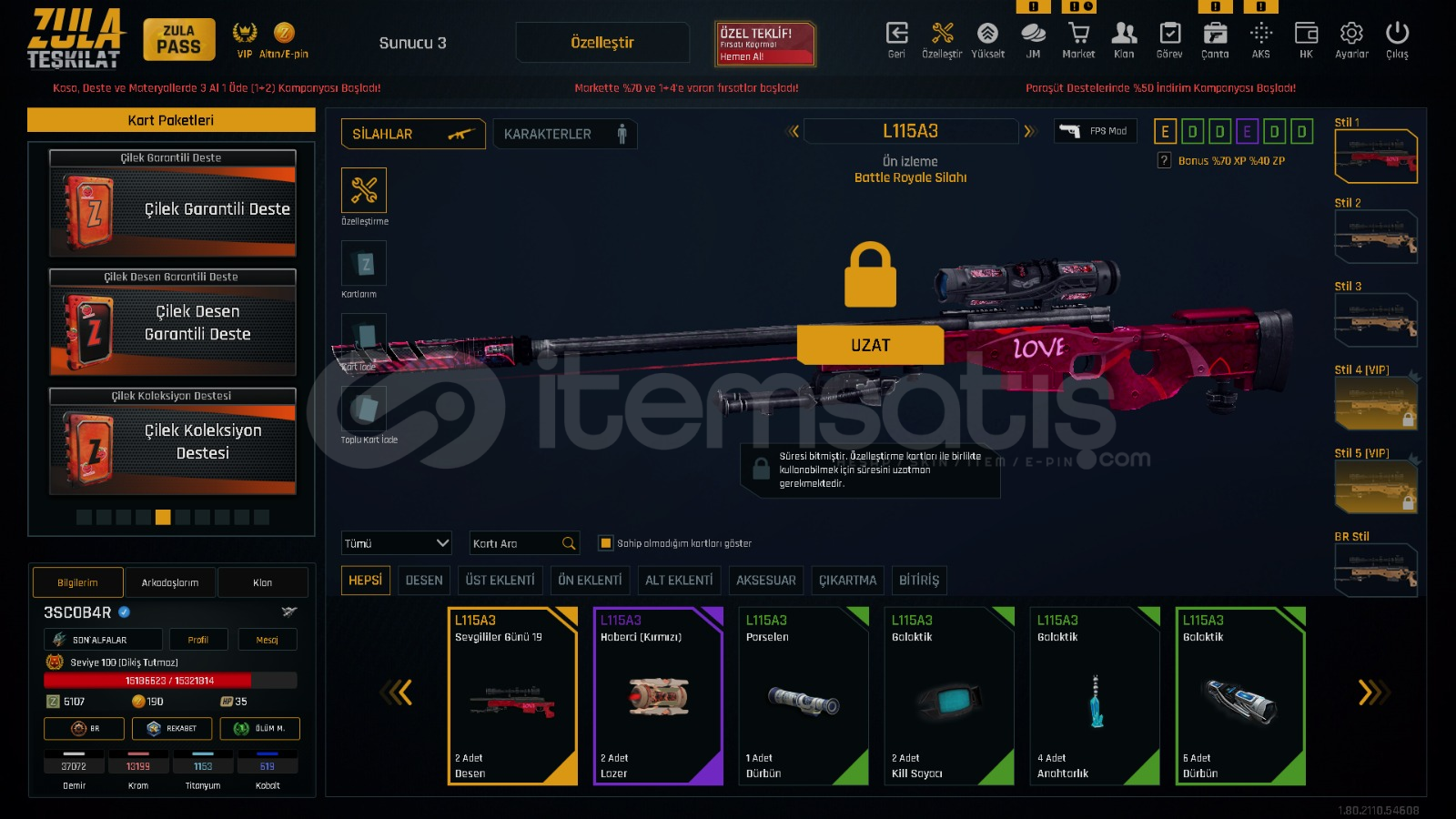 📌 Zula Mükemmel Özelleştirmeli Hesap Satılık – 100 Seviye