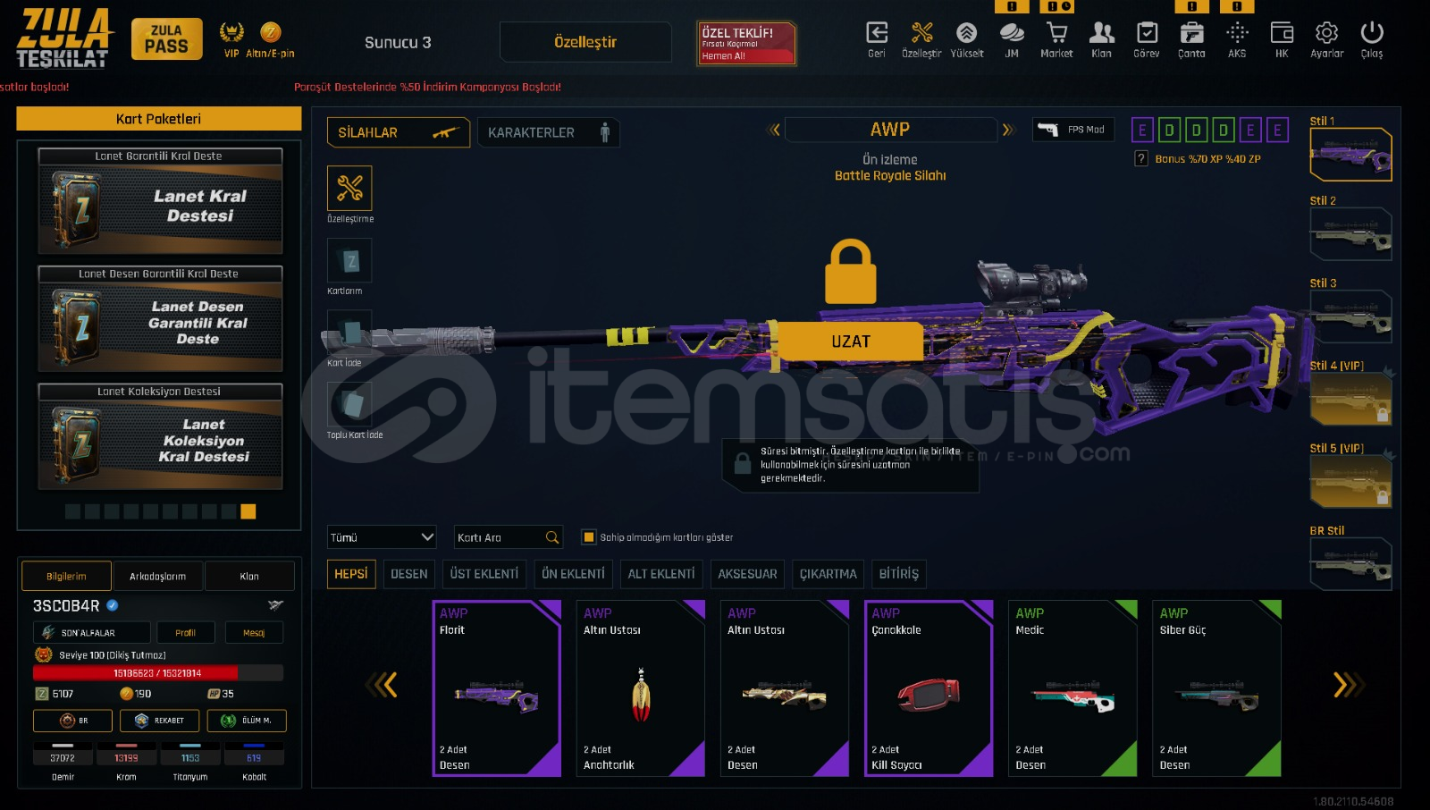 Zula Mükemmel Özelleştirmeli Hesap Satılık –