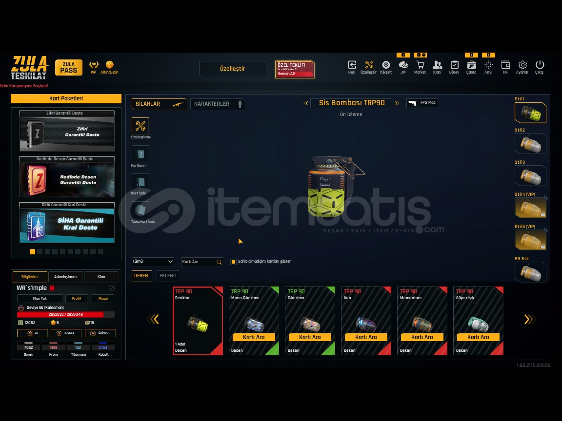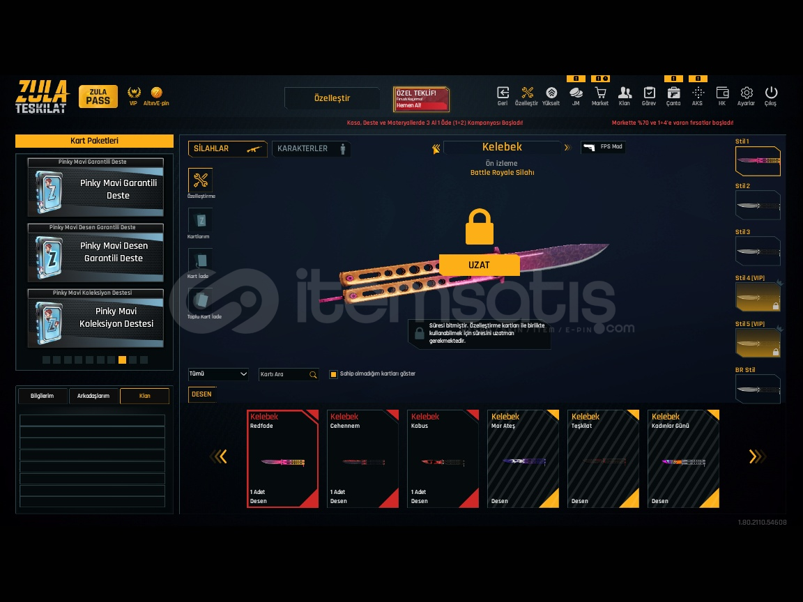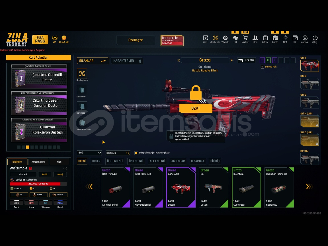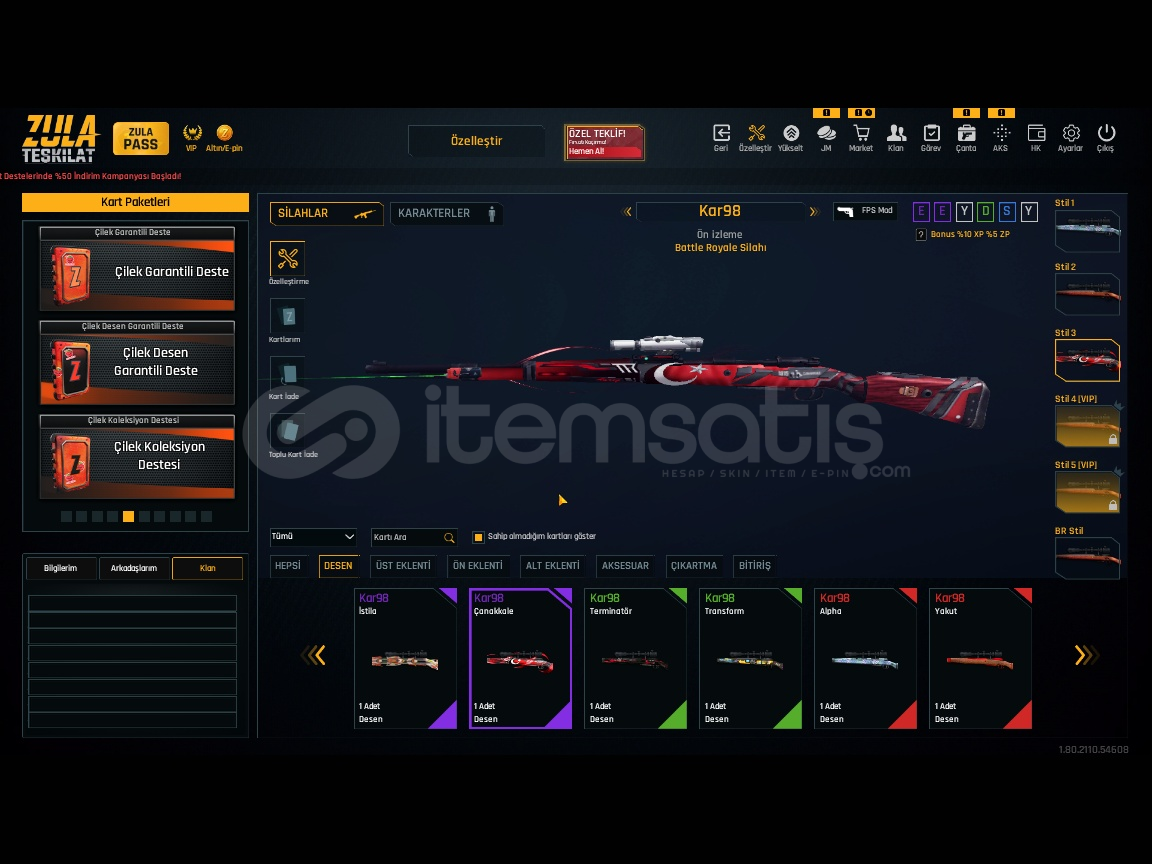 Seviye=66TRP90 ZALI SKİN~SİLAHLAR~+7 OLAN SİLAHLARMPT-76 (+7)L11A3 (+7)USTURA (+7)KELEBEK (+7)KATANA (+7).................................................+6 OLAN SİLAHLARAUG A3 (+6)KAR98 (+6)GROZA(+6)TOMMY GUN (+6)M93R (+6)KARAMBİT (+6)KNUCK (+6)İKİLİ BOMBA (+6)İSTATİK SIFIRLAMA 1XİSİM DEĞİŞTİRME 1X