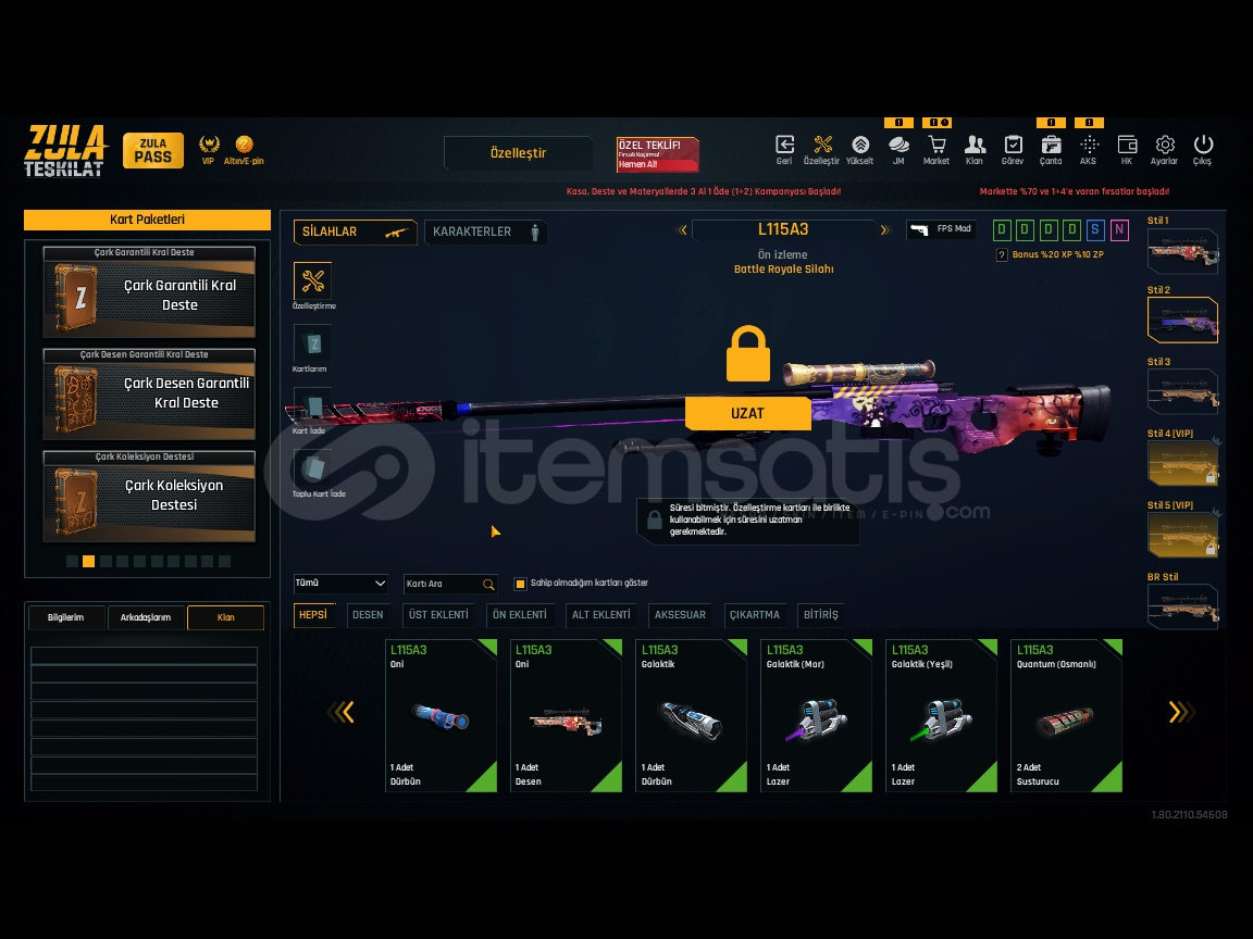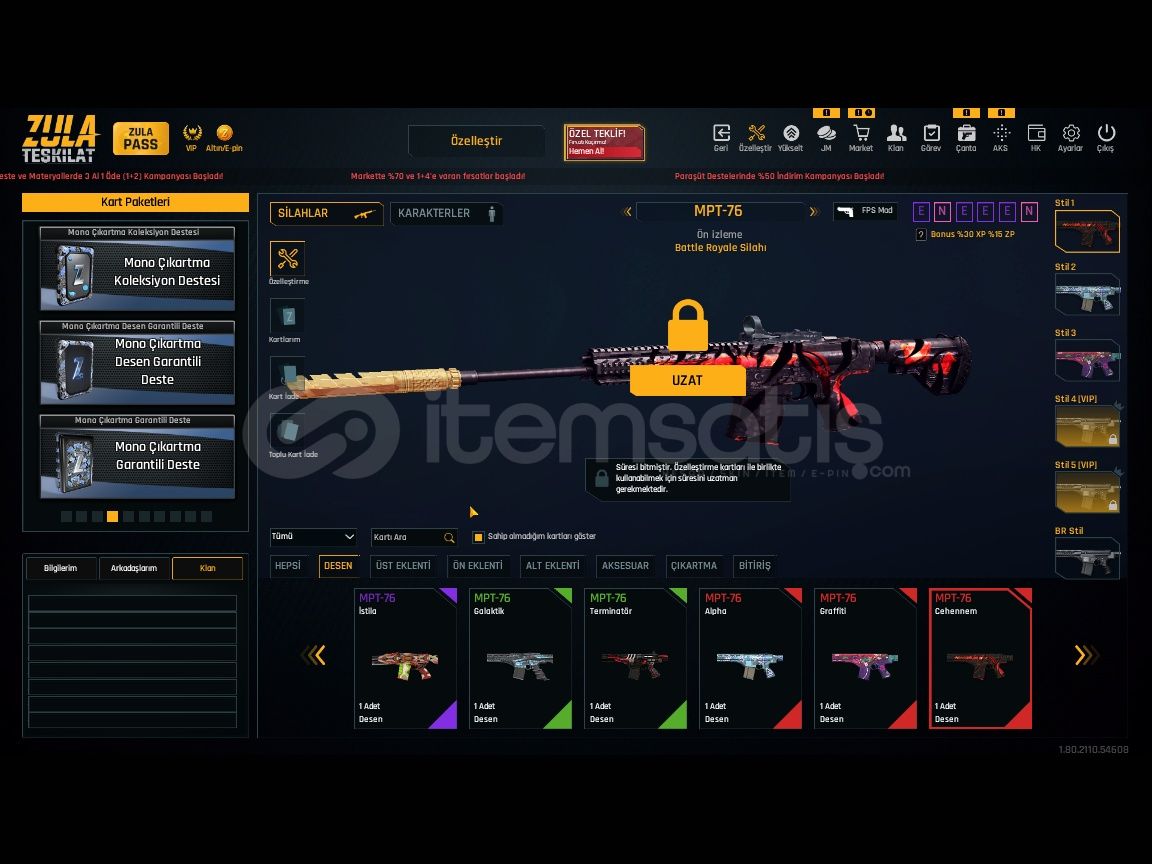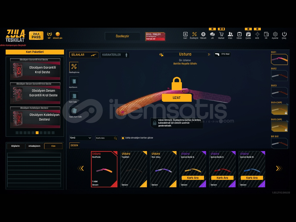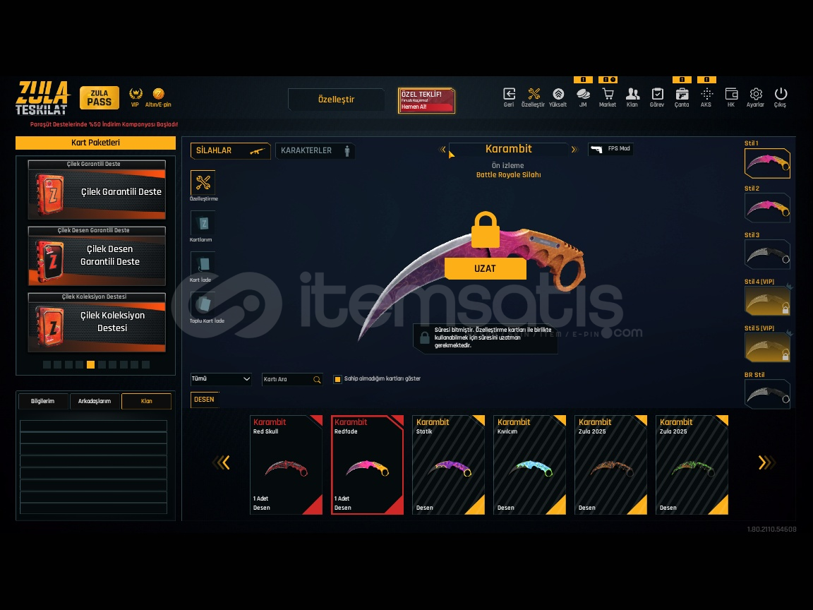 Seviye=66TRP90 ZALI SKİN~SİLAHLAR~+7 OLAN SİLAHLARMPT-76 (+7)L11A3 (+7)USTURA (+7)KELEBEK (+7)KATANA (+7).................................................+6 OLAN SİLAHLARAUG A3 (+6)KAR98 (+6)GROZA(+6)TOMMY GUN (+6)M93R (+6)KARAMBİT (+6)KNUCK (+6)İKİLİ BOMBA (+6)İSTATİK SIFIRLAMA 1XİSİM DEĞİŞTİRME 1X