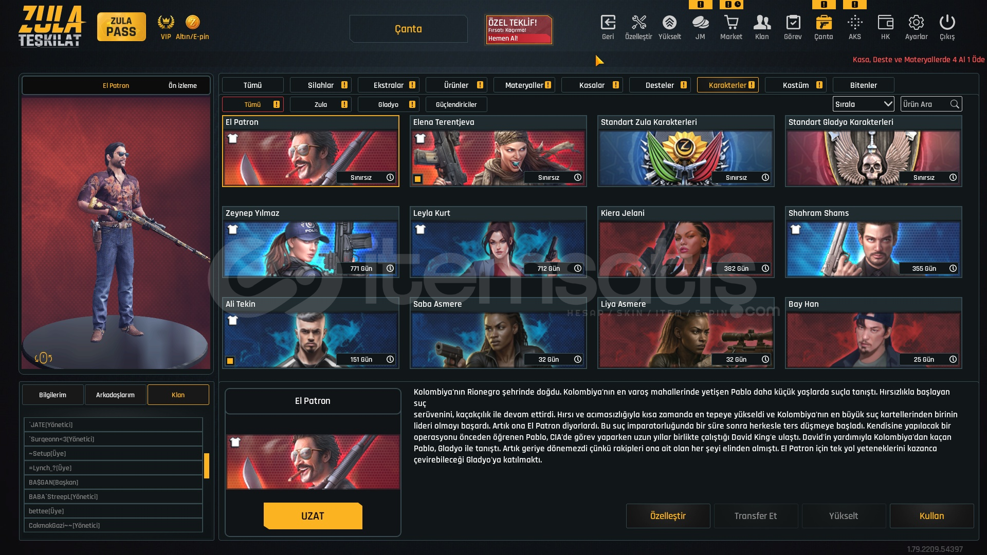 karakter 2 tane sınırsız kalanı 200-800 gün