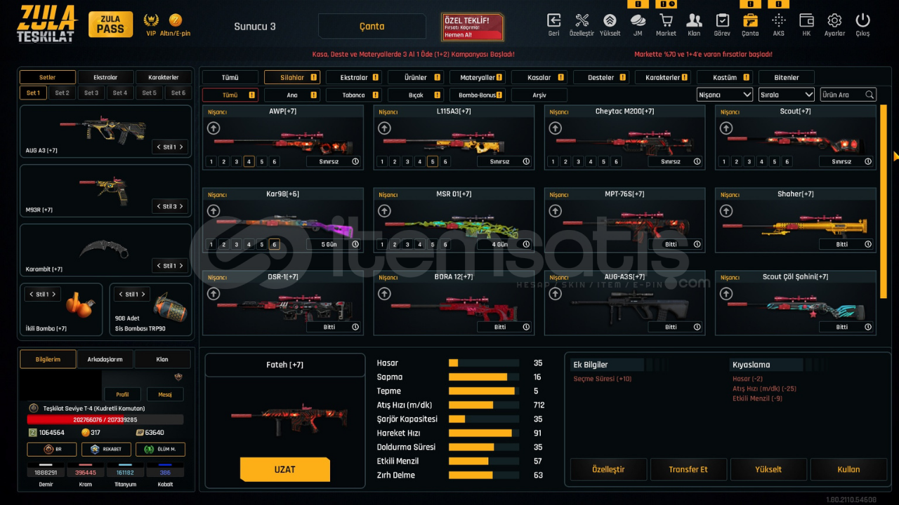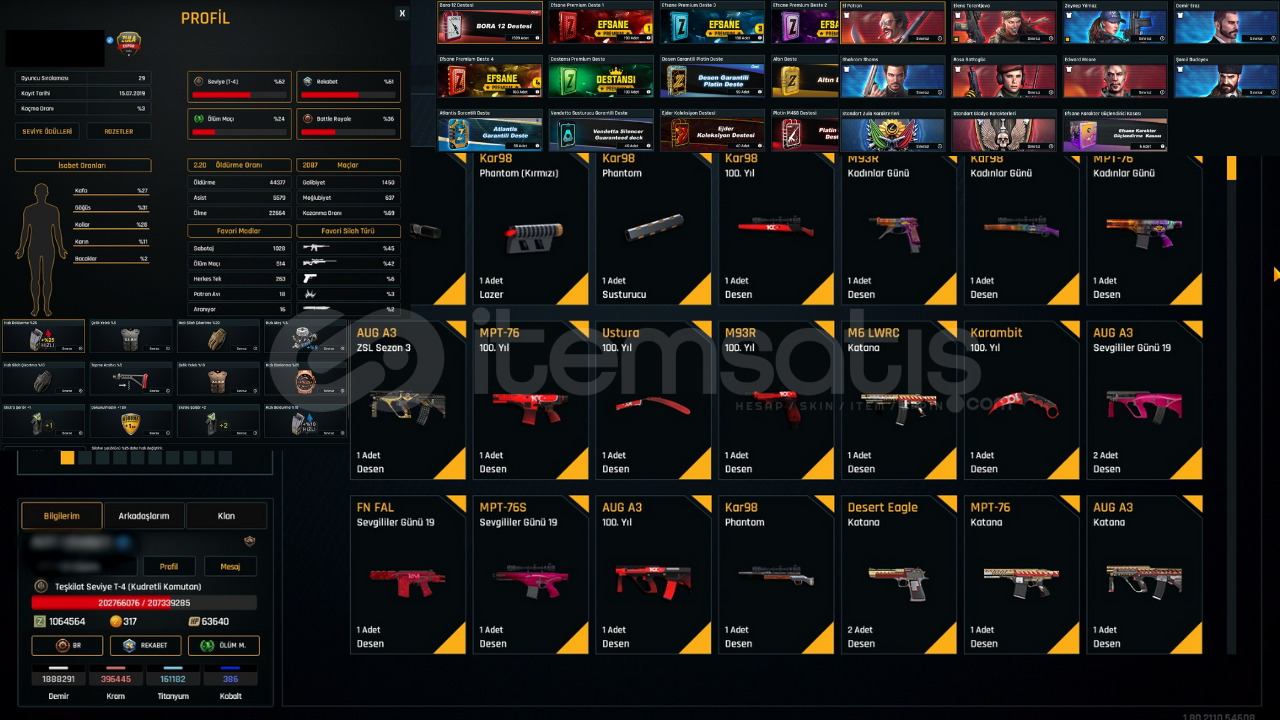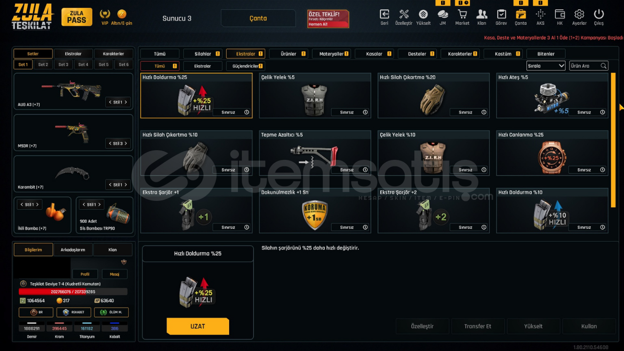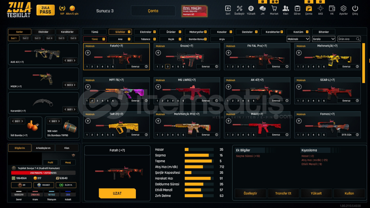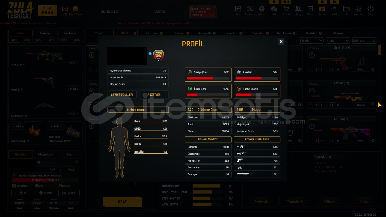 💣ZULA TR - FULL+ Eşsiz espor deseni ve kadınlar!💣🟢T4 Seviye🟢148 Level🟢Türkiye Sıralaması 29 {Asıl Sırası 25 Oynanmadı için sıralaması yükseldi}🟢1.064.564 Zp🟢317 Za🟢37 Adet Sınırsız +7 Silah 🟢1 Adet Takma Ad Değiştirici💰Fiyatı 14.900 TL-- 📋NOTLAR:🟢Mail ve telefon Sağlamdır Satın Aldı...