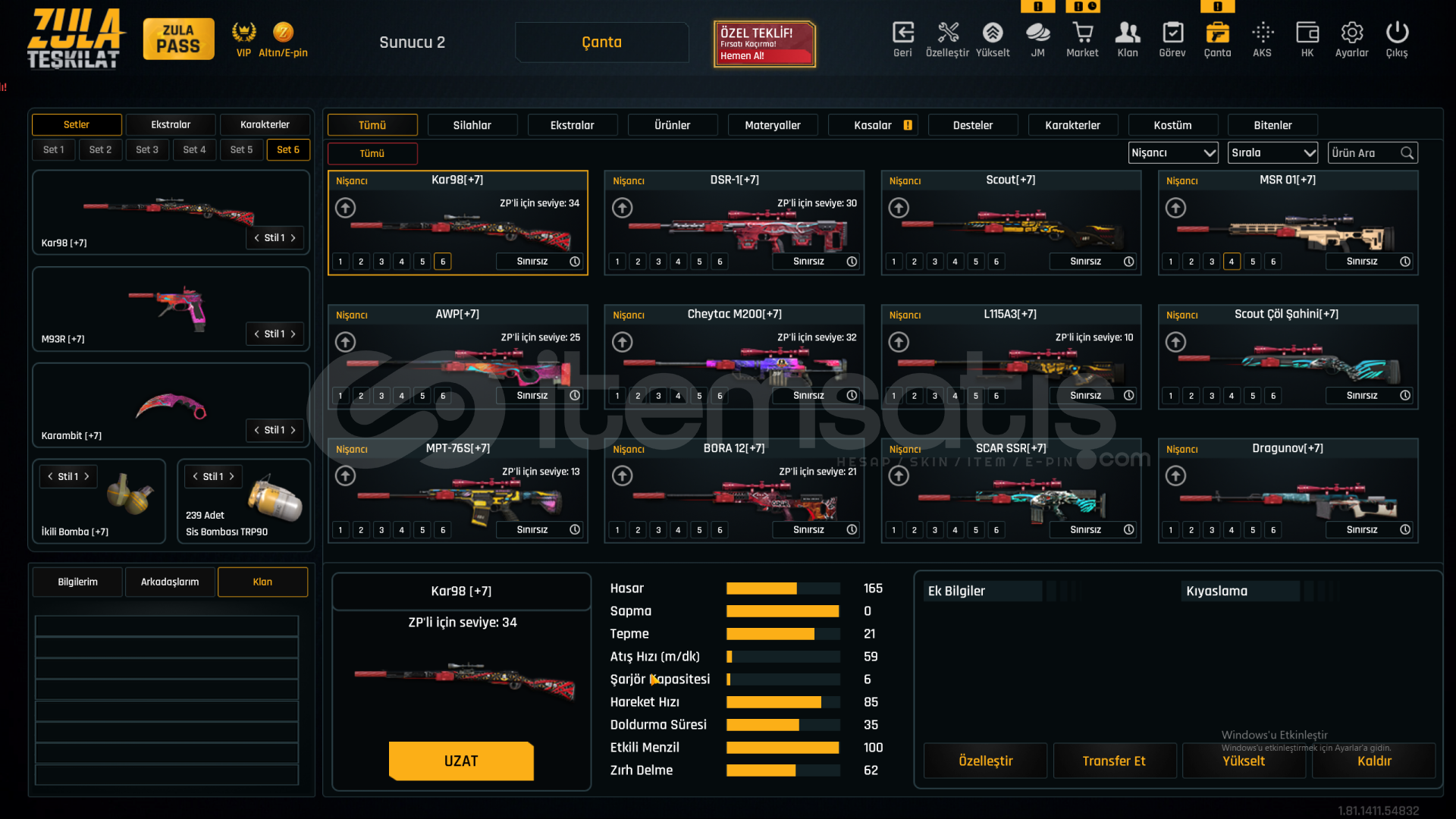 🔫 SINIRSIZ +7 SİLAHLAR – DEV ENVANTER (84 ADET)