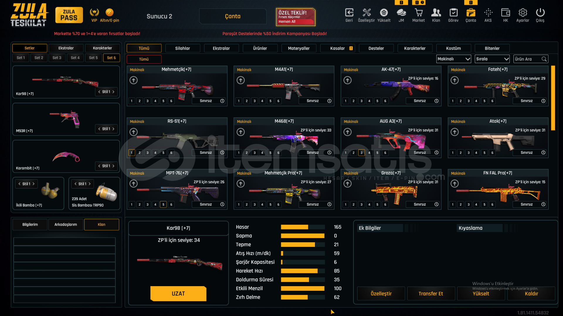 🟢 84 Adet Sınırsız +7 Silah